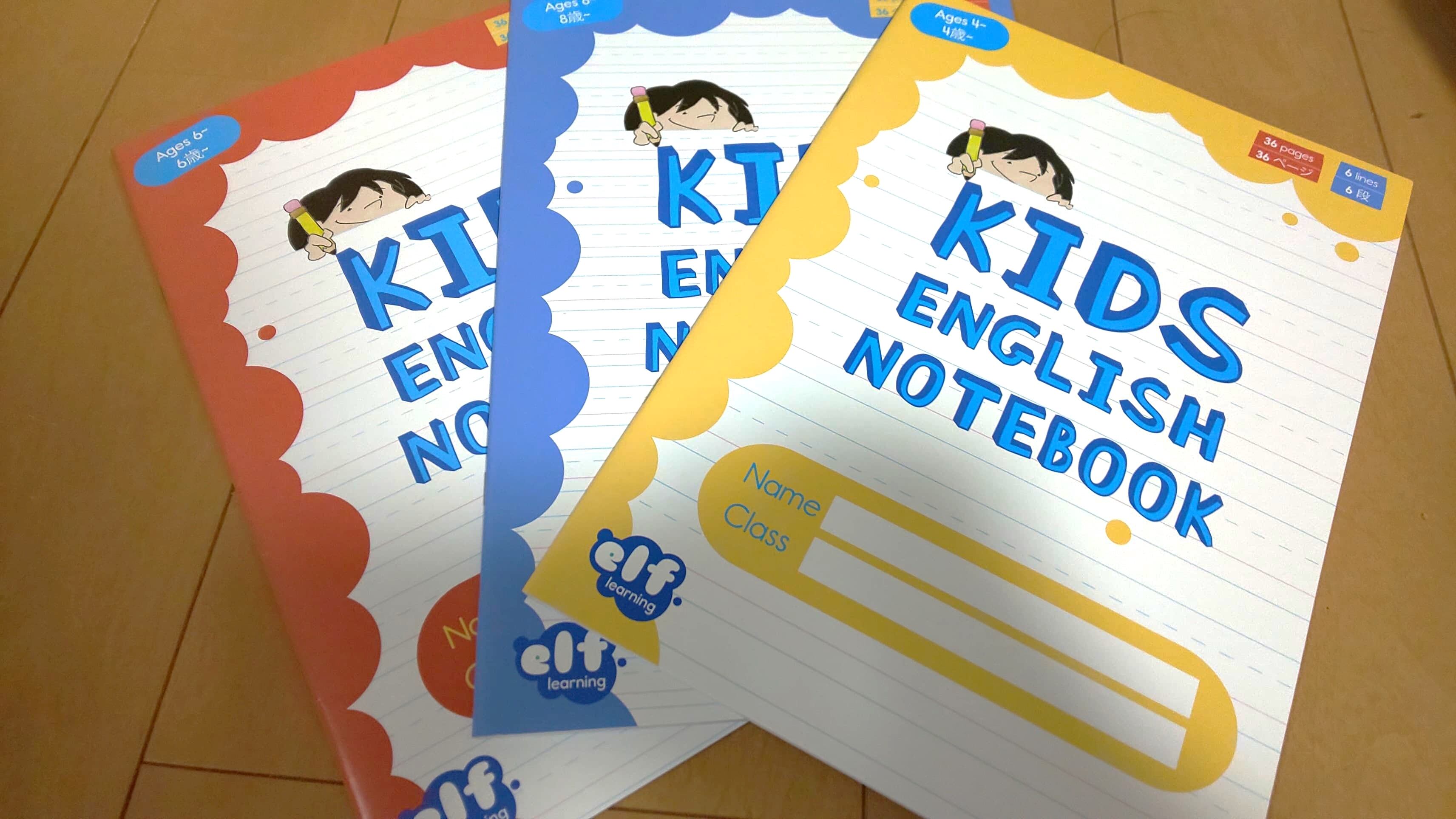 年齢によって異なる4本線の太さが3種類あります。お子さんによって最適なものをお渡しいたします。A4サイズのノートは配布物を貼るのに最適で、レッスン時に配布するプリントがどこかにいかないように貼っていきます。